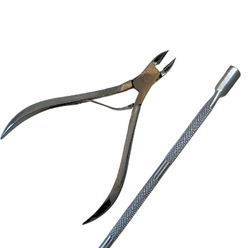 This professional duo includes a precision cuticle pusher and sharp cuticle nipper, crafted from high-quality stainless steel. Designed for comfort control, they gently prep and trim cuticles before product application. Durable, easy to sanitize, and essential for every nail tech’s kit.